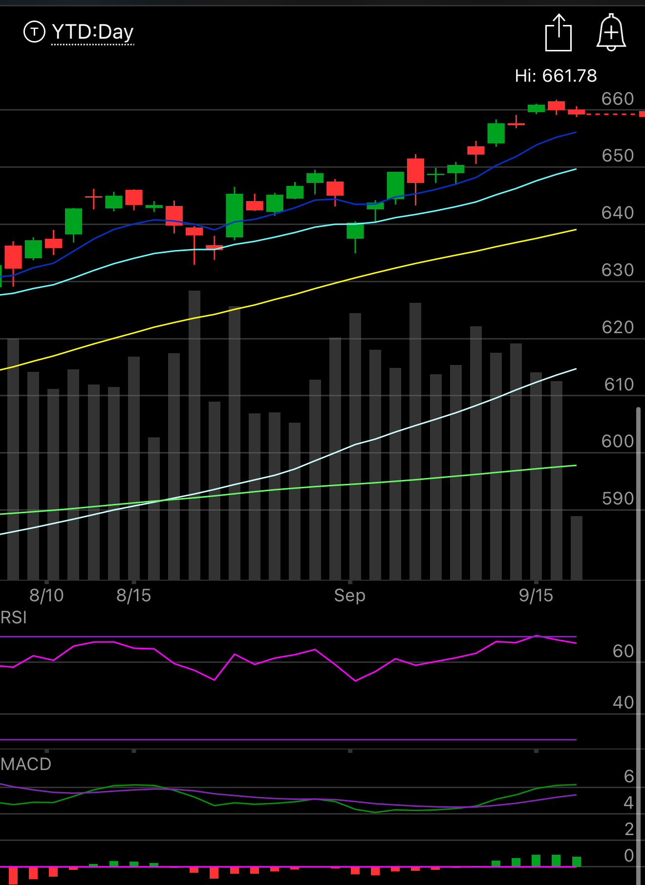The SPY is hovering over the 8 ema but we’re seeing some weakness today before Powell. As I said yesterday today’s focus is all on the dot plot, obviously should he somehow surprise and not cut the market would probably sell off, but if he cuts and the dot plot shows less cuts than the market is pricing we would still likely sell off so know that by being long into this event you’re at the mercy of whatever is on that chart. As I said yesterday I would remove anything with 60 days or less till expiry if you’re scared of gambling, longer term, it will be fine either way. If you’re using leverage I would lighten up alot into this event, it really isn’t that difficult to throw it back on tomorrow if the coast is clear.