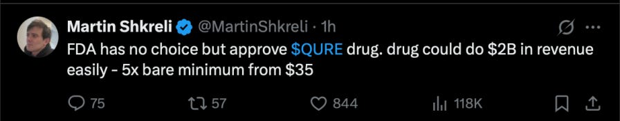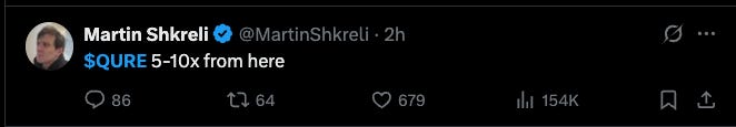 The risk/reward, for me, is exactly what I’ve been looking for with 3 months to go and a huge capital gain already. I already have a huge gain just from today but I’m going to ride this for a little bit for the reasons above. This is why it pays to know who you’re following on twitter there are some brilliant people on there and just following Shkreli and seeing his tweet gave me a $800k+ gain today, think about that? Lastly, I hit a really big milestone for me and this substack today which was that my original goal was to document turning what I started with back in June 2022, which was $1.4M into $10m and it took me 39 months or 1,204 days to be exact to do that, but I’ll write more about later probably this weekend if it holds up.