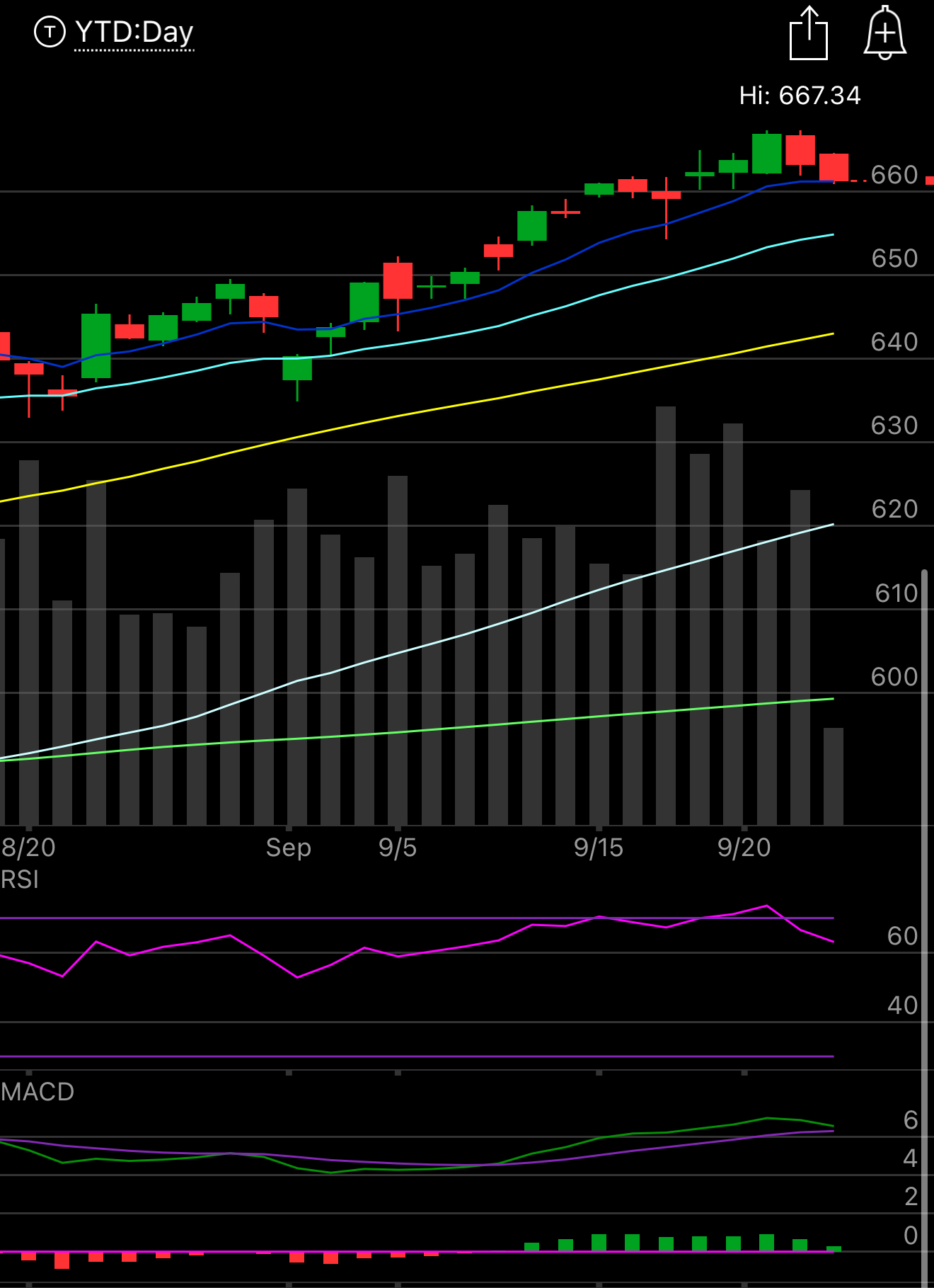 The SPY is pulling into the 8 ema again as tech leads the weakness. We discussed this possibly happening yesterday as the energy flows were very strong. Today you got a followthrough with the whole energy space running nicely, I would say you really need to be cautious here if we lose that 8 ema(dark blue line). If we bounce off that 8 ema and continue to hold today, the coast is clear, until its not. This has been a nice couple weeks over the 8 ema, we really have been in an incredible uptrend but 2 straight days energy names are showing leadership and in the market that is a caution flag. I would be really careful putting on new longs today before I see how this closes end of day. Also note the VIX is perking up, just remember you don’t always have to do something sometimes you need to let the market play out without pressing things.