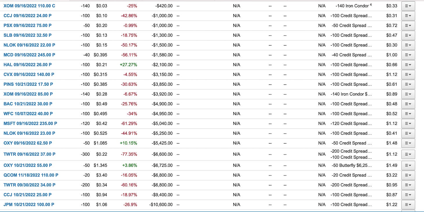 That’s it, I have alot of positions expiring on 9/16 that will free up some margin, but for now I’m tapped out so to speak on Margin and what I want to keep free.