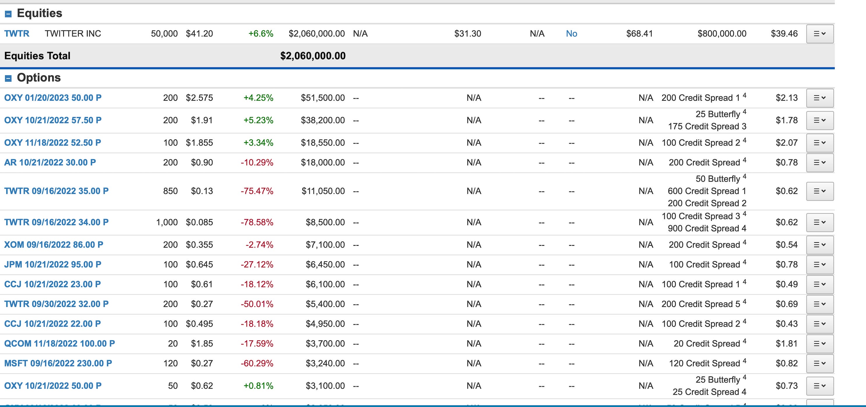 As always I post all my positions, usually on monday but yesterday due to the Twitter court hearings I couldn’t go through it all so here they are