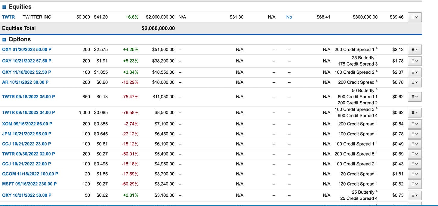I was going to recap what happened with Twitter yesterday during the court date with Musk but there is no need to now. Twitter was up almost 7% today and as you know I’ve been building an enormous position for the last 2 weeks. I’ve stated repeatedly how mispriced the asset was as Musk was getting too much credit on his ability to get out of things in the past. The judge in Delaware had so many snarky remarks yesterday and then denied his request for an extension this morning, basically she’s not playing any of his games. Delaware has a repution to uphold as the leading business court in the country and if Elon got out of this, the concept of what a contract is would just be thrown out the window. This all boils down to a few simple things