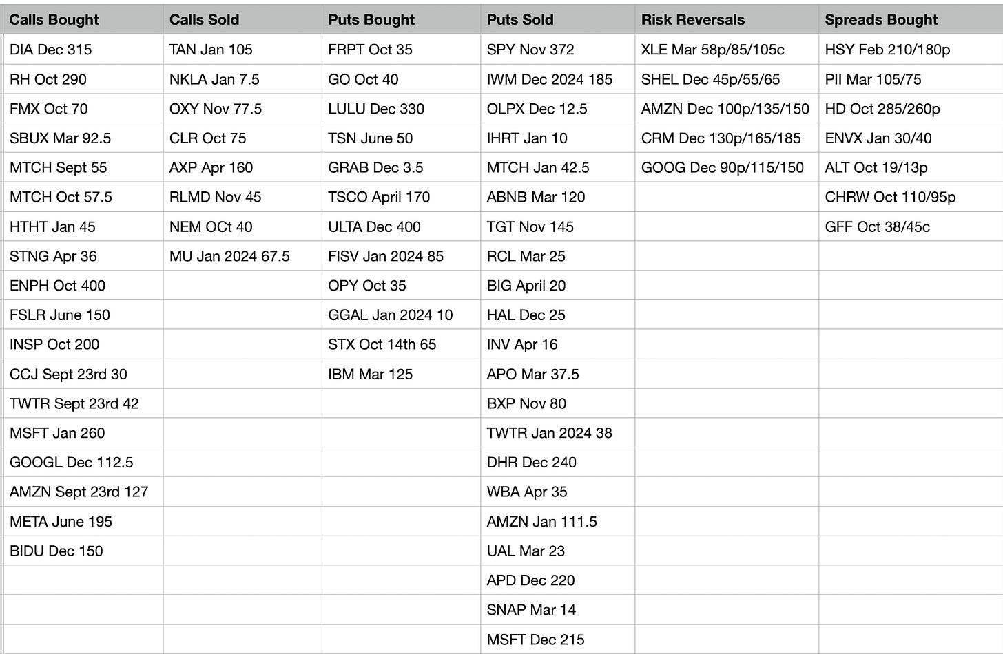 Today’s Unusual Options Activity