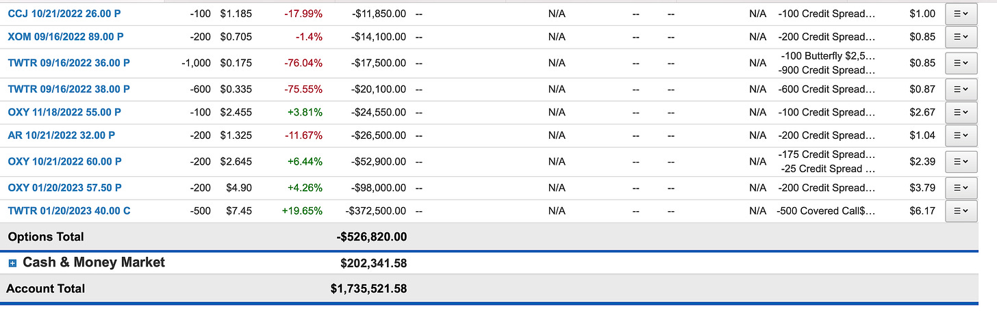 So I wasn’t able to put this trade on yesterday morning bc CCJ gapped up 5% and by the afternoon I was too busy with the Twitter court going on to worry about this, so as you saw yesterday I sold some CCJ puts in October instead but for those of you who sold those 27/26 put spreads yesterday if you did, its looking good now with 2 days left and the stock at 29.42 now