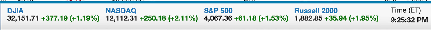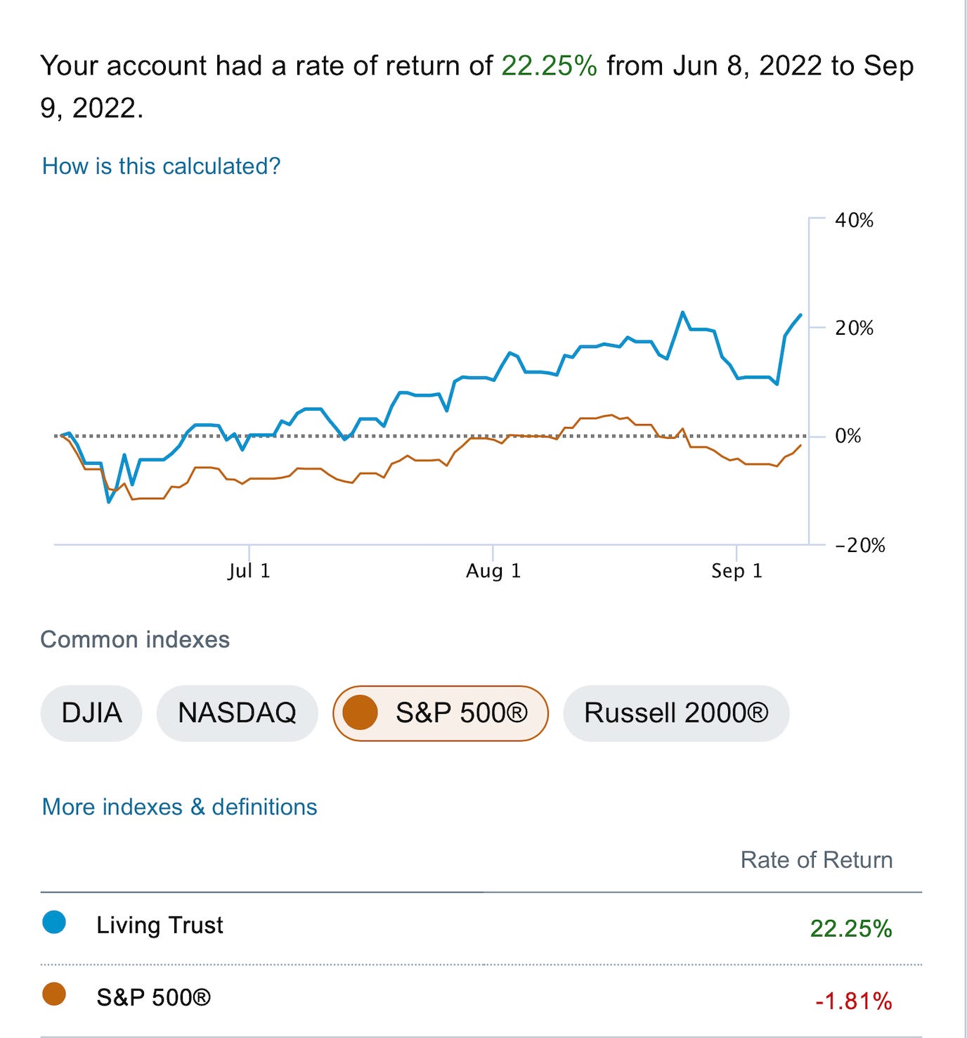 In underperformed by a little bit today, it was mostly due to Twitter short calls I had going up far in excess of what the shares went up, and those will throw off my performance short term until the premium fully comes out. As the week ends, obviously having had a monster week in TWTR, my outperformance from the start of this substack on June 8th continues to widen vs the market where I’m up 22.25% vs the market being DOWN 1.81% in that timeframe. On my end, I’m very satisfied as I continue to show you all that active management can work, and well, when stocks stop going up everyday. As bullish as everyone is now, pretty remarkable we’re actually negative over the last 3 months.