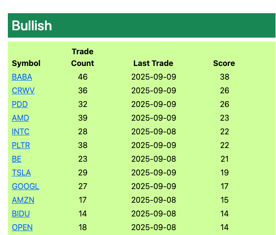 The real trade continues to unfold in China with KWEB continuing to be strong and BABA up big overnight today after BIDU was up big yesterday. None of this should be a shock to any of you as I’ve been highlighting China hard the last couple weeks just look at the database, over the last 3 weeks China is dominating the flows. This trade feels like it is just getting started and if we close a trade deal with them watch out.