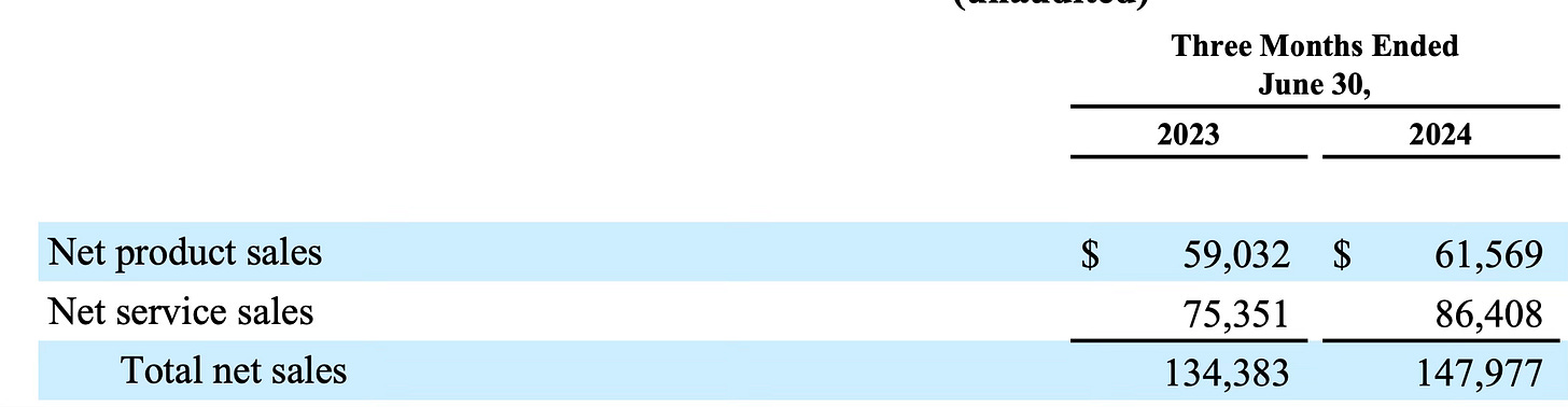 With Amazon it’s always something new, if it’s not AWS, it’s ads, if it’s not ads, it’s margins, etc. Simply put they have too many moving parts and they can never seem to get those parts to work at the same time. Look how long the Amazon earnings release is vs Apple which is simply 3 pages. Amazon is just too complex for their own good at this point, they need to stop breaking out all these segments, go to services and just discuss this below. Services are the only segment that matters and those are now 58.4% of Amazon’s business. That is so impressive but you’d never know it unless you broke out a calculator. This was the slowest growth of services at 14.6% year over year, but still very impressive when the number is $86.4B