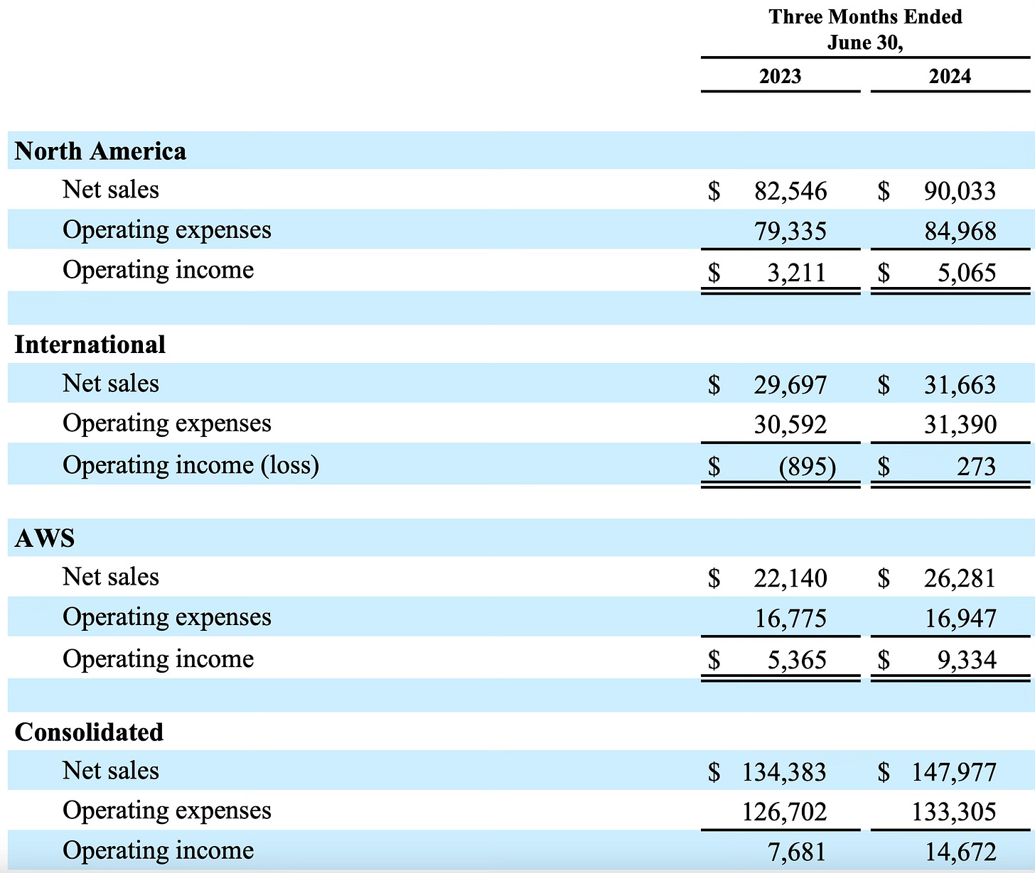 AWS was up 19% to $26.28B and at tremendous margins which led to $9.33B in operating income in the quarter. It’s funny watching the goal posts move, 2 quarters ago the panic was over how Amazon was worthless ex AWS and AWS was struggling to grow, now AWS is booming and all the analysts on tv find every excuse to explain why AWS isn’t that important. I don’t think I’ve ever seen a business change CEO’s and then post a record quarter the first quarter, but AWS did that at a $105B run rate, pretty remarkable in all honesty.