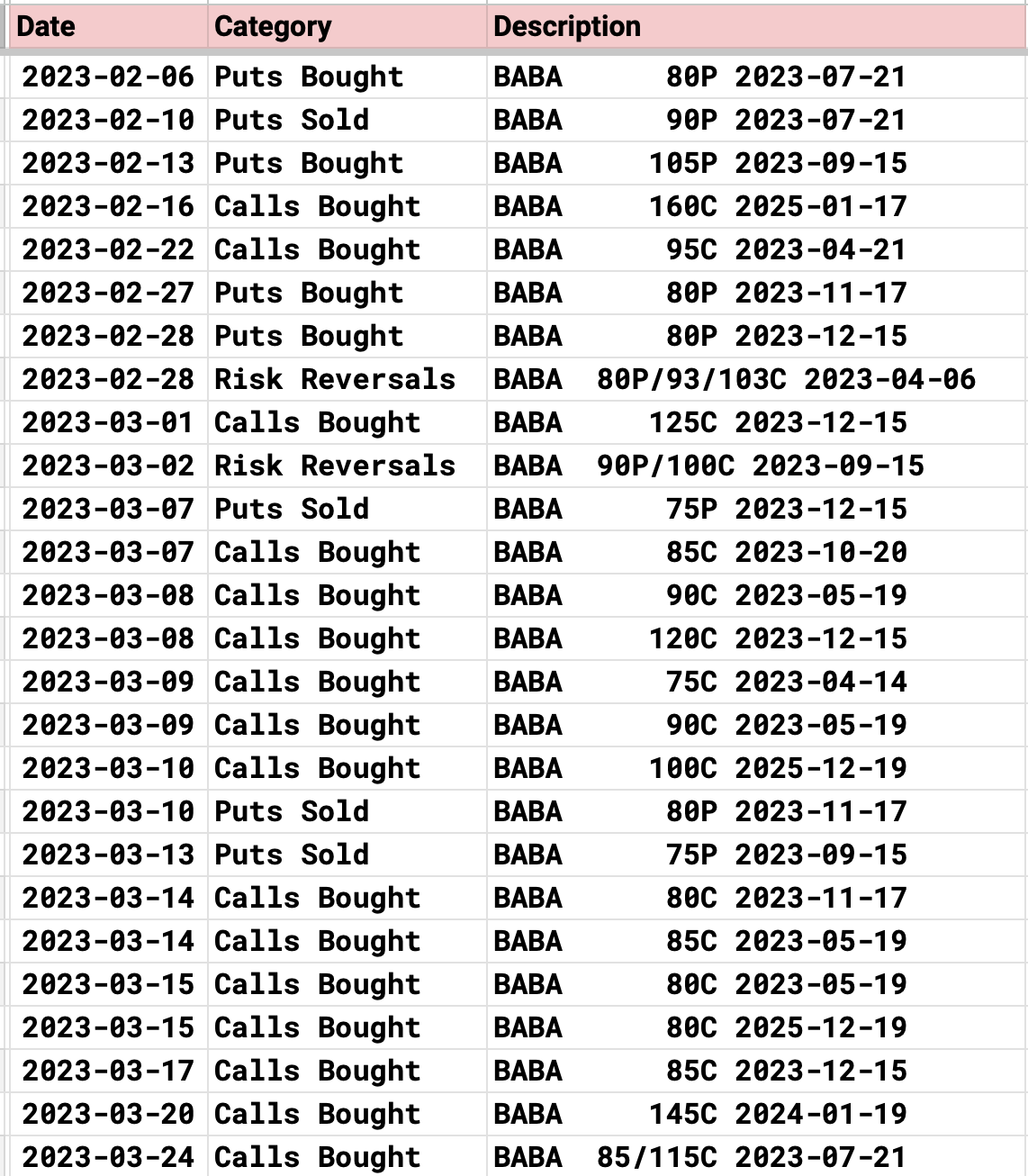Because option flows are truth in a world of lies. Investors are focused on 13-f’s which come out way after the fact. You look at last year, Dan Loeb went on rambling how Amazon was $1T undervalued and investors got excited when his 13-f came out way after he took his stake, and within a quarter he had cashed in his stake. So why focus on data that’s looking backwards is my answer. The options market is live and I try to capture the most unusual action within it daily, I then put it in my database to help me build trends which I can then use to find strength. That’s how we end up with something like last week me making JD my best idea of the week and then it going up 10% on news of the spin off. The spin off was known to all the funds who were buying those options, I caught wind of something happening, my database saw it repeated over and over, same with BABA for weeks on end and voila, there was indeed something.