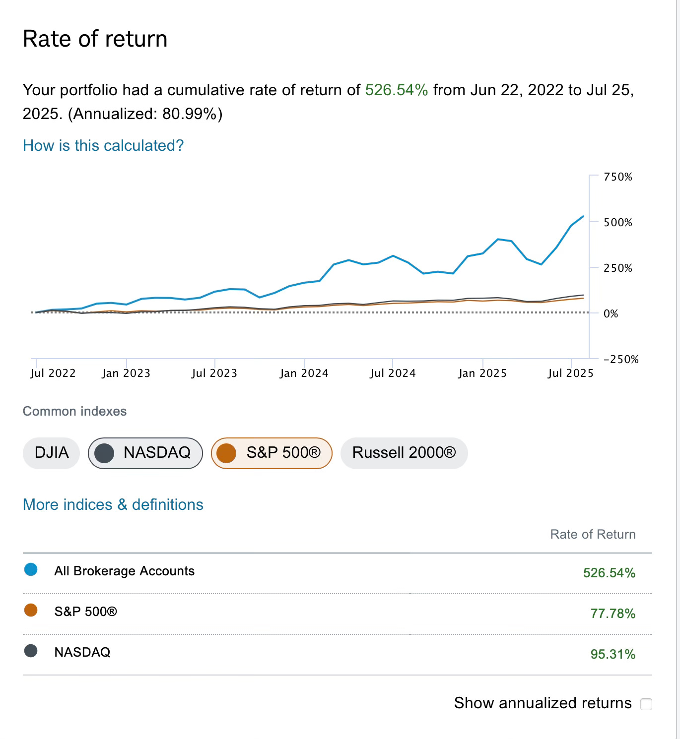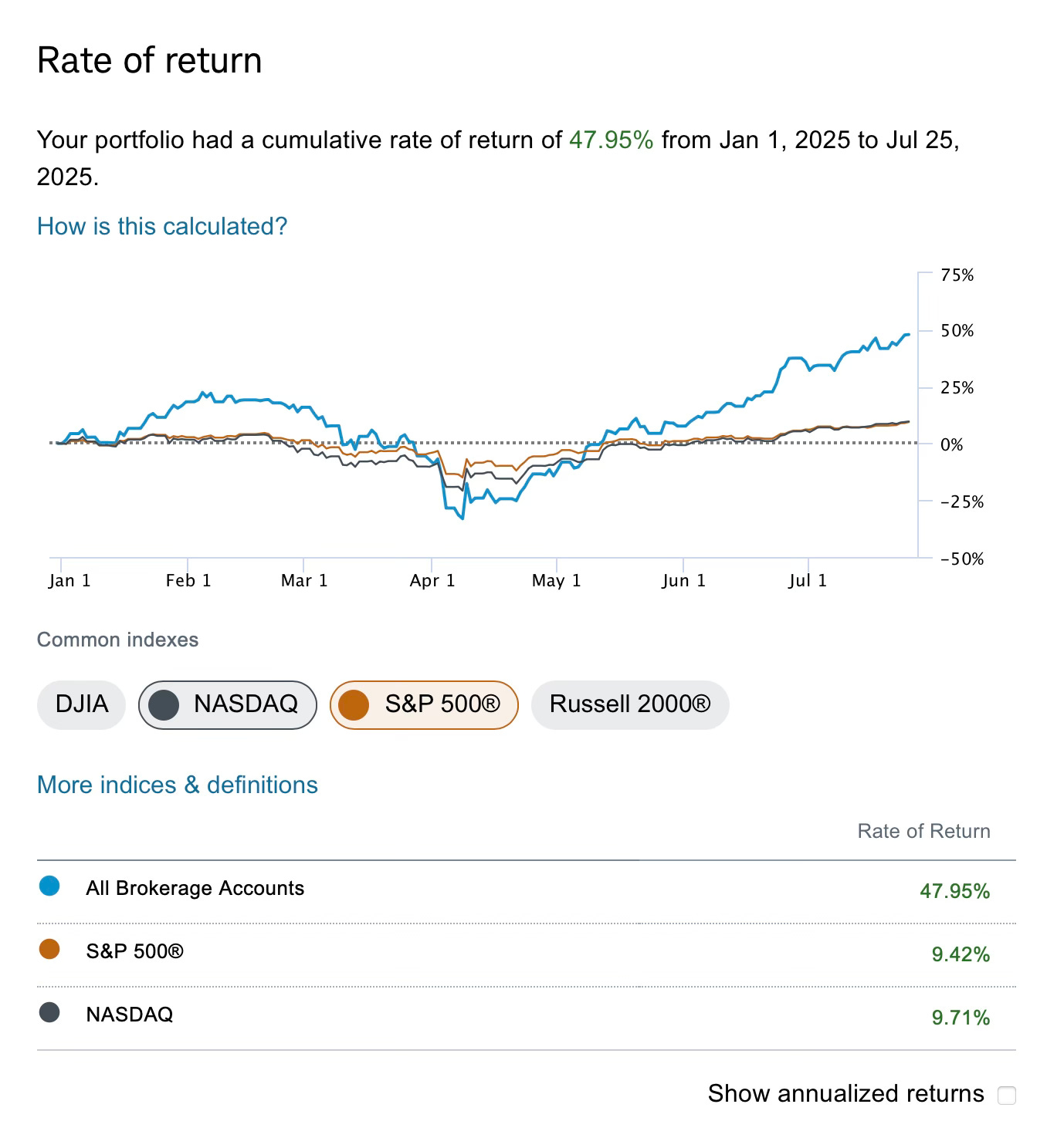 On a shorter term basis of this year I’m up 47.95% while the market is up 9.4%.