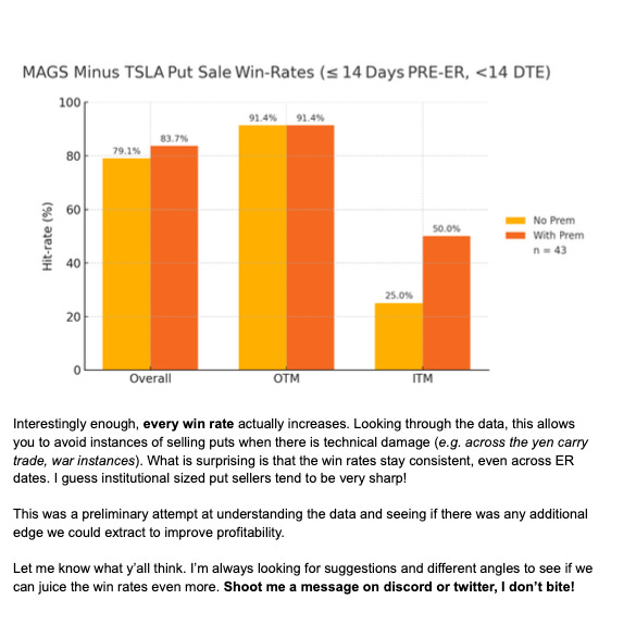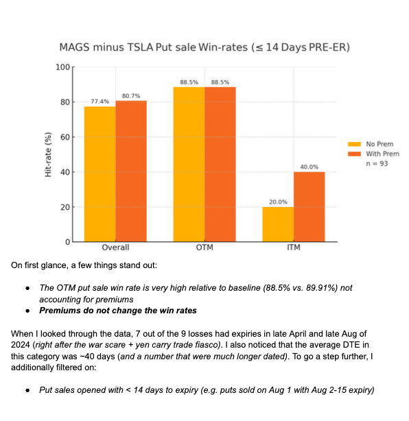 Great post, James! I have two questions, want to hear your takes. 1. I sometime see far ITM put sales in your database. They likely won’t expire worthless, how do we interpret that? 2, in put selling, a key is to manage the loss when the put is broken. Even if I win 90% the time, that 1-put loss may take away almost all the profits from the 90% wins.(I had a tough lesson on $$SMCI last year☹️) With a sudden gap down on non-ER event, I don’t even have the time to stop-loss. Then weather to hold it further or cut with huge loss was a poisonous pill. Do you have any suggestions on how to mitigate/avoid such situations?