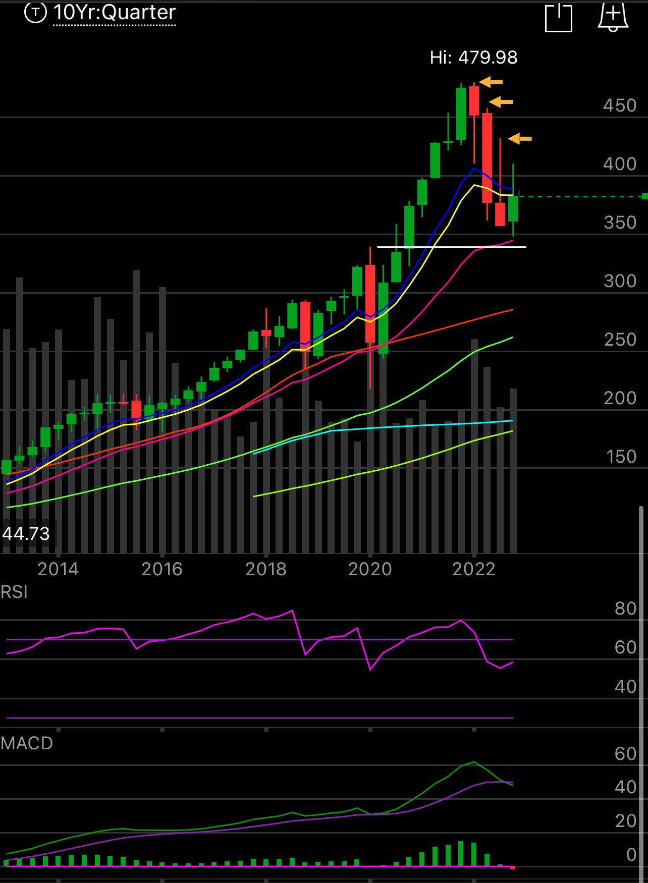 On a quarterly basis, the MACD flipped negative for the first time in a very long time, well over a decade, it takes time for technical damage like that to resolve hence my stance on a prolonged period of nominal returns, for the buy and hold types.
