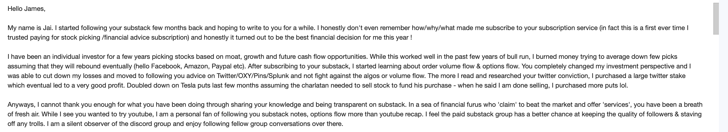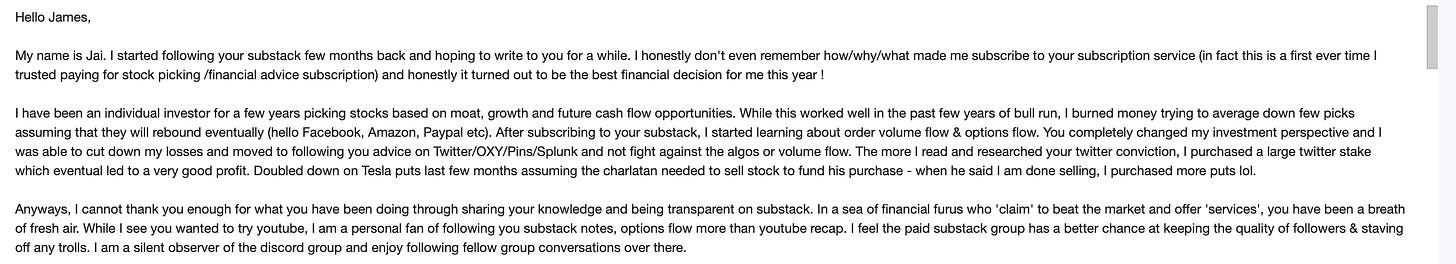 With that said these emails really brought me more joy than you can imagine. It’s a satisfying feeling knowing that the hours of work putting together the daily recaps are paying off. Maybe not enough to buy a $13m jet like Meet Kevin telling people to buy Tesla everyday on youtube, but maybe I can get there someday ha!