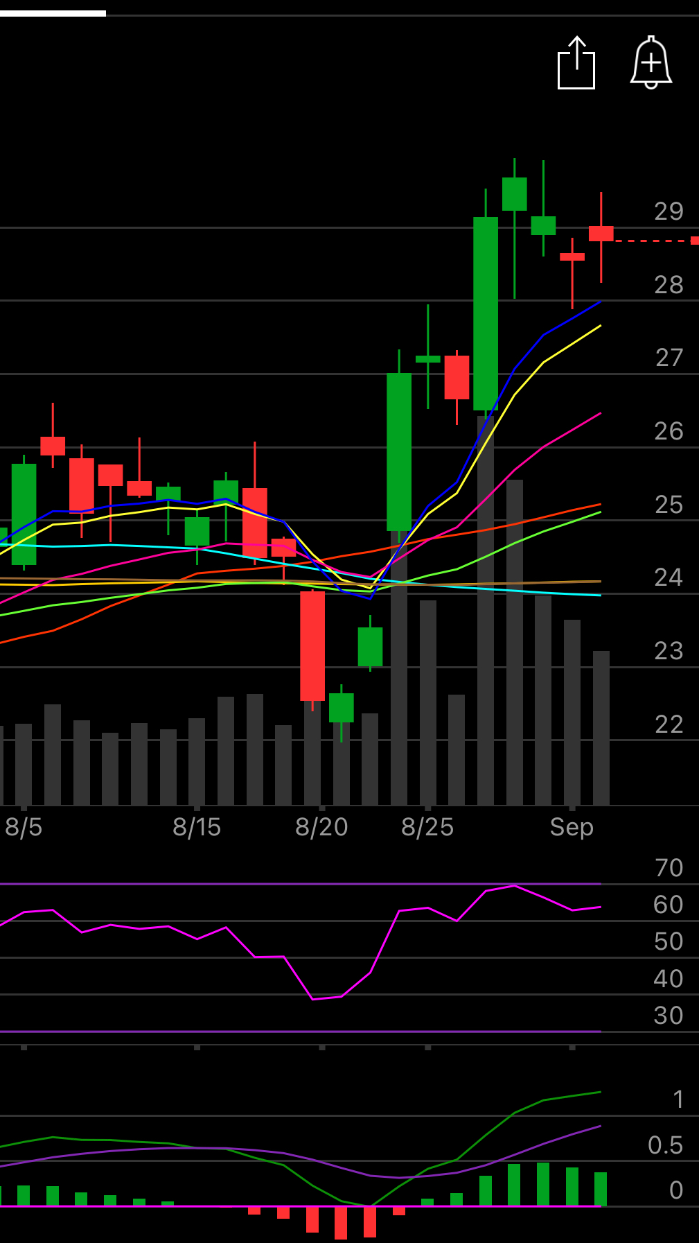 I like selling a 27/26 put spread for this week. That is selling the $27 put and buying the $26 put for a credit of .12 which leaves you with a near 14% return of .12 on .88 of risk.