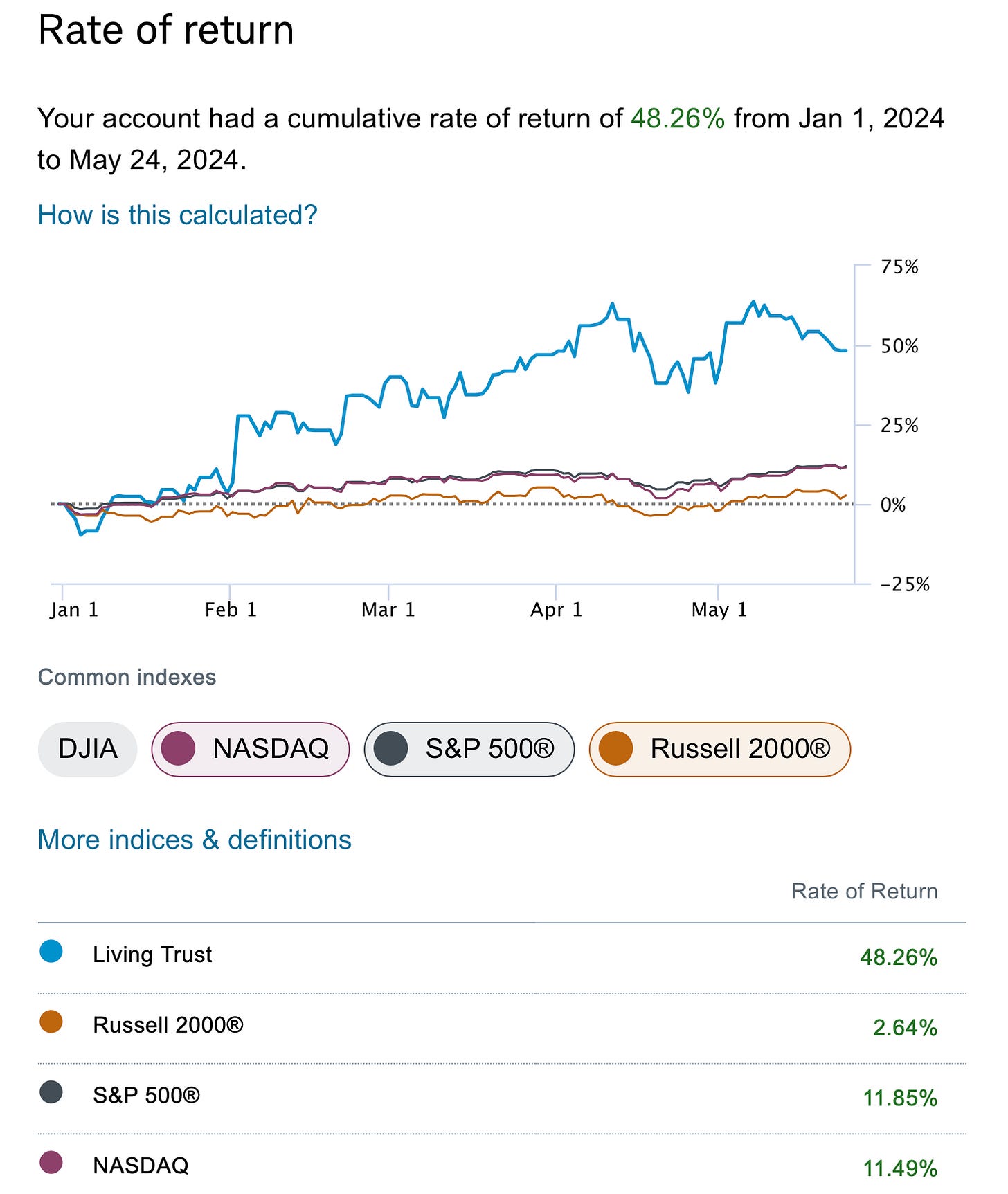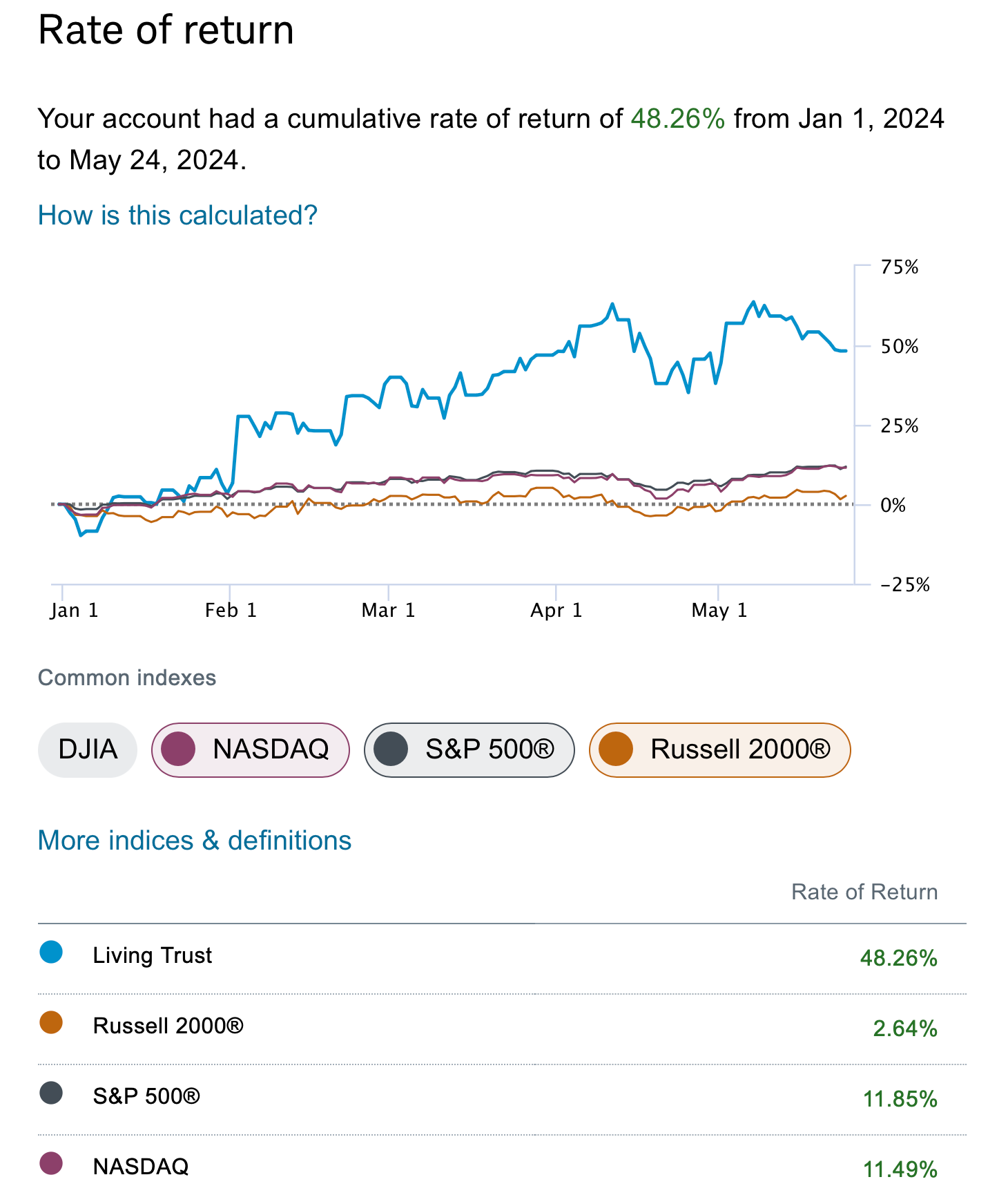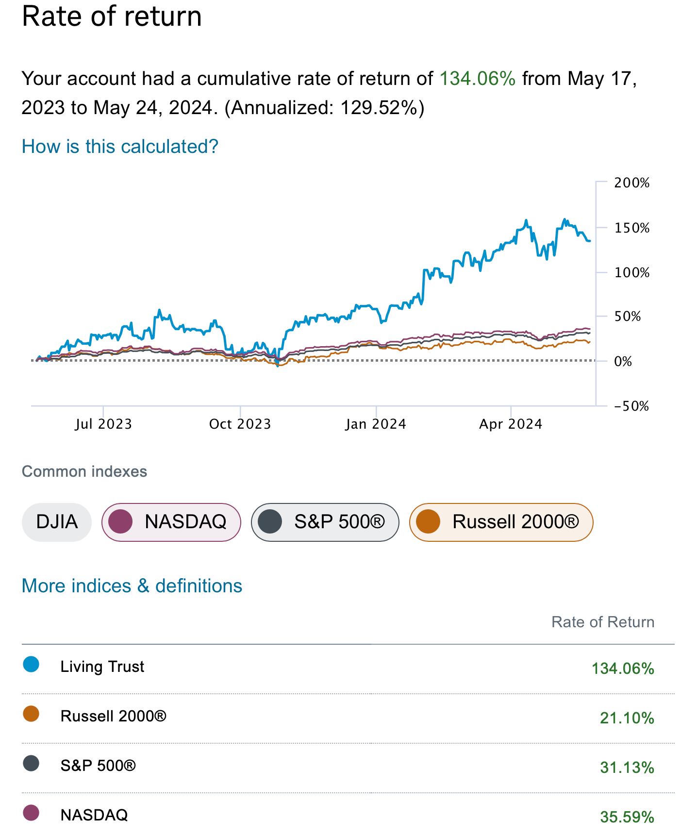 Going back to last May when I entered the trade I’m up 134% vs the market at 31%.