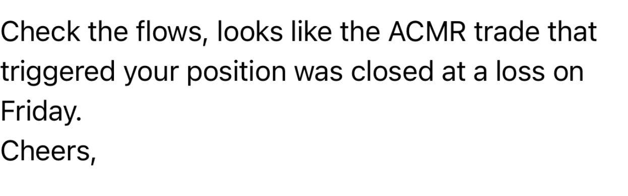 Anyhow, I got an email this morning letting me know the ACMR trade I noted was closed out.